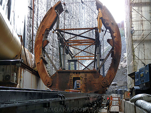 building construction sites in Niagara. The rock face of the tunnel is prepared